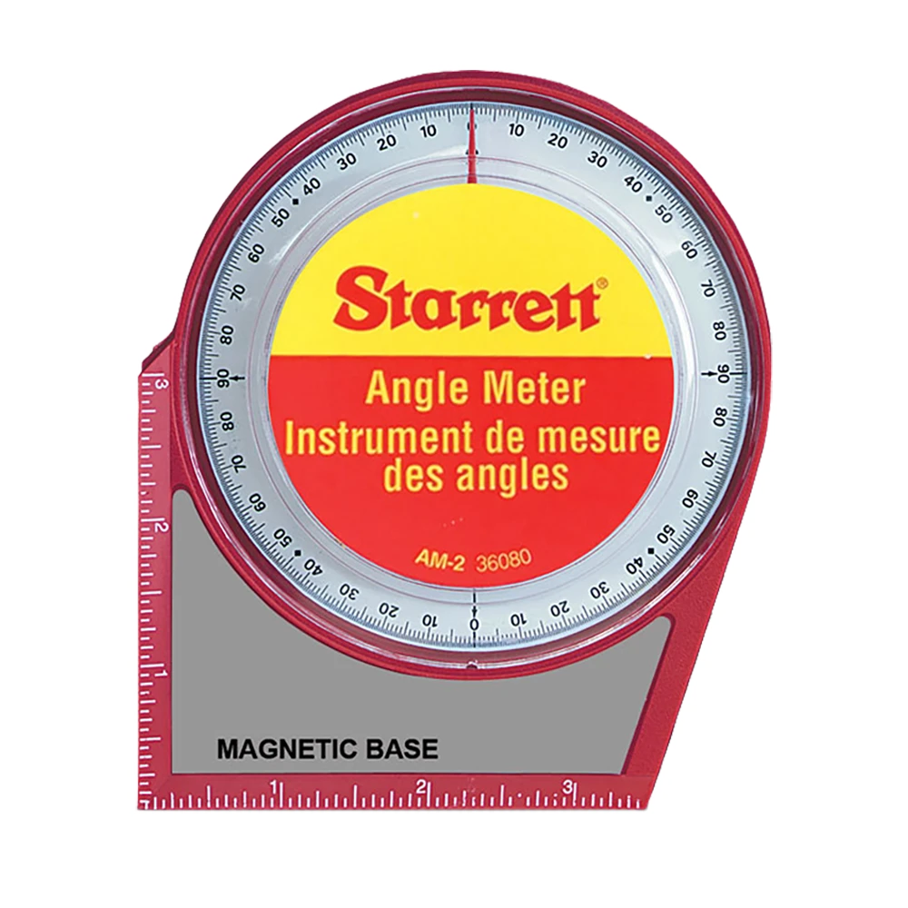 Angle Meter provides large readable scale for accurate readings from 0˚ to 90˚in any quadrant. Integral magnetic base frees hands when used on ferrous surfaces. Meter measures any angle for pitch or slope and provides handy rise, run, angle and pitch information on back of the tool.