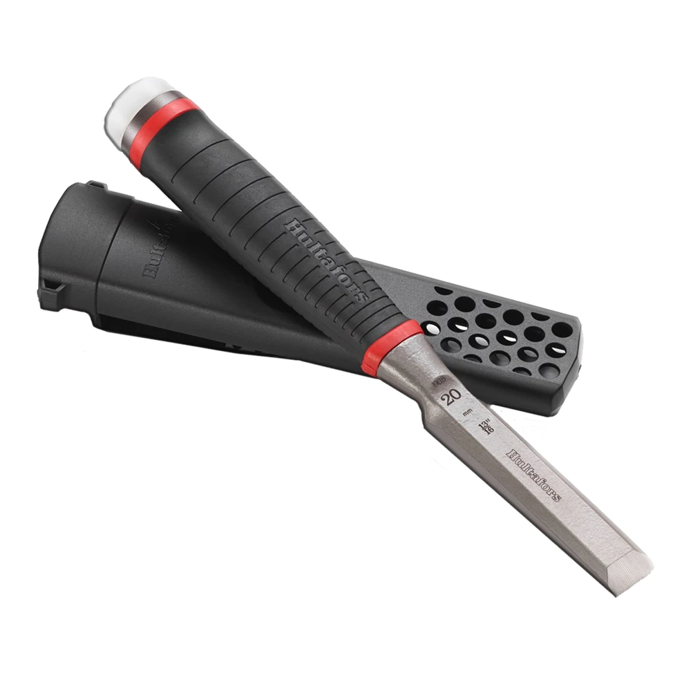 Chisels with perfect precision, sharp, heavy duty, and always close at hand. They are ready for tasks requiring extreme strength and precision. A perfect ground blade, bevelled at 25? for the best ratio possible between sharpness and durability. The entire chisel including the handle can be positioned flat against the surface for expanded uses. Smart holster made from durable PP plastic for increased accessibility, the holster can easily be attached to a belt or on a button.