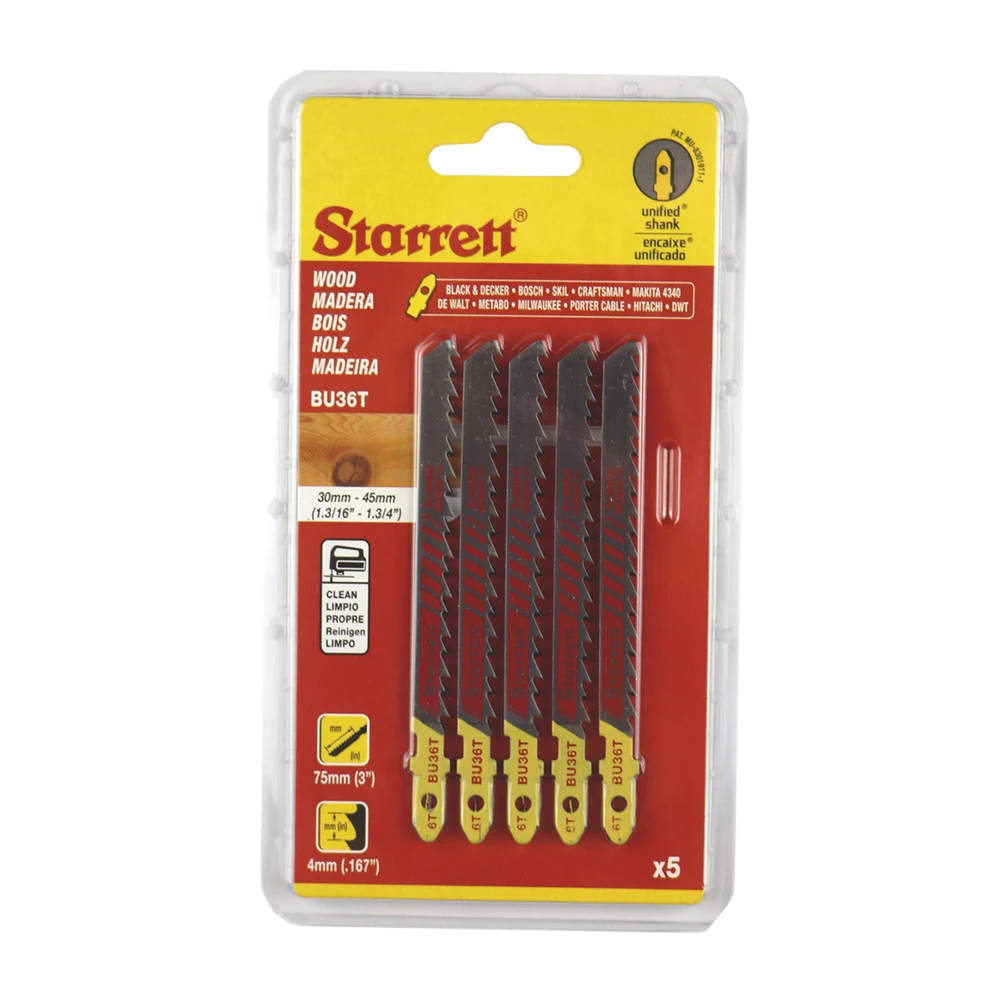 Starrett Bi-Metal Unique™ Saw Technology, with Unified Shank™ Jigsaw Blades will fit in virtually all jigsaw machines. Our Unique™ Blades feature 170% more weld contact area than standard bi-metal blades through the Unique™ solid state diffusion bonding process. This ensures exceptionally strong teeth, combined with the multiple cutting edges and split chip advantage, ensuring that Starrett Jigsaw Blades typically last 25% longer than directly competing products.