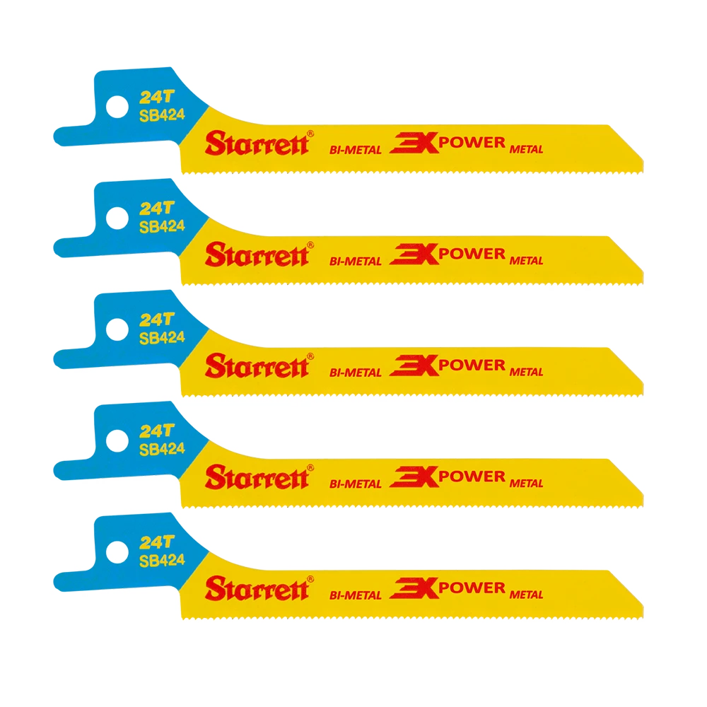 Starrett 3X POWER Bi-Metal reciprocating blade technology provides up to three times the life and increased cutting rates compared to our previous line, setting a new level for performance and value on the market. The metal cutting range comes in a straight blade format, designed for harder cuts when the tip may need to be forced. Ideal for using in cordless saw machines, it will power through metal sheet and sections.