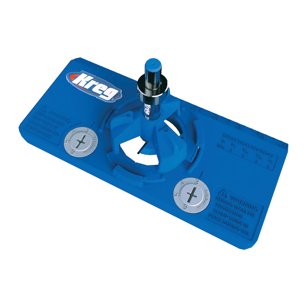 The Kreg® Concealed Hinge Jig consists of a glass-filled nylon base with a hole that receives a drill guide. Indexing cams ensure that the jig positions the bit to drill a hole at the required offset—which is dictated by each hinge—and a built-in stop collar ensures that the cup depth is correct every time. There are even holes that you can use to guide a bit for hinge screw holes. The Kreg® Concealed Hinge Jig comes with a high-quality, carbide tipped bit to ensure great results.