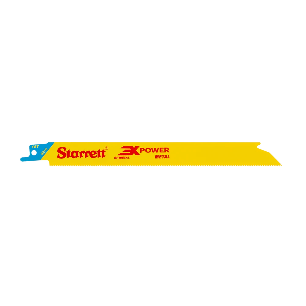 Starrett 3X POWER Bi-Metal reciprocating blade technology provides up to three times the life and increased cutting rates compared to our previous line, setting a new level for performance and value on the market. The metal cutting range comes in a straight blade format, designed for harder cuts when the tip may need to be forced. Ideal for using in cordless saw machines, it will power through metal sheet and sections.